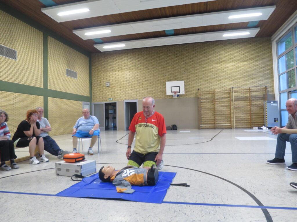 Notfallübung für die Mitglieder der Reha-Herzsportgruppe des Rehabilitations- und Behindertensportvereins